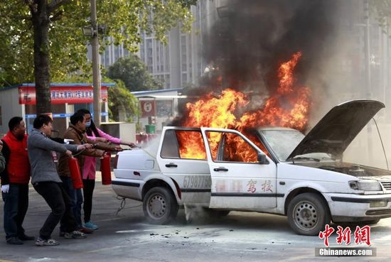 2015年11月1日,河南省郑州市沙口路,一所驾校在练车场将一辆轿车点燃,实战传授学员实战灭火技能。当日上午,该驾校练车场,数十名学员被召集起来进行实战灭火课程,练车场上一辆报废的轿车多次被点燃,由学员们轮班上阵进行灭火体验。驾校总教练称,车内电路容易短路突发火情,学员经过实战演练,可大大提高应对能力,绝对会受益匪浅,驾校求有个好的口碑。