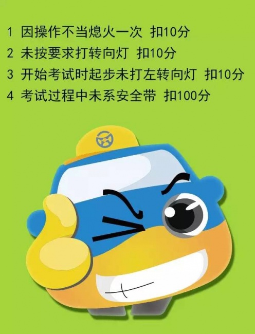 科目二考试只有五项全部通过才算合格,因此,大家若想顺利通过科目二考试,就一定要牢记以上扣分标准和扣分位置,避免自己驶入雷区。