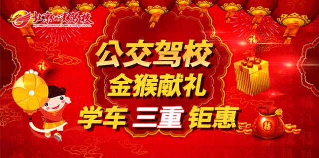 亲爱的童鞋们,2016春节即将到来,公交驾校全体同仁在此预祝大家新年快乐!万事如意!为答谢广大粉丝对公交驾校一如既往的支持与厚爱,现推出金猴献礼——新年新禧钜优惠活动,三重好礼,总有一个适合你!
