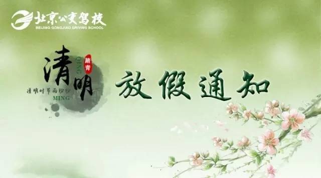 根据市政府办公厅和北巴传媒通知精神,现将公交驾校2016年清明节放假安排通知如下: