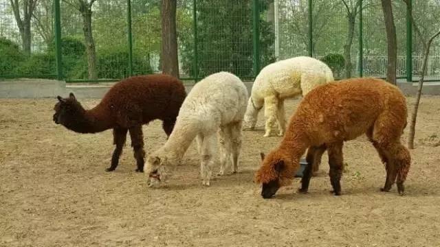 这四只小羊驼,颜色为两白两棕,身高一米左右,囧囧有神的大眼睛,最酷炫的发型,长睫毛、脖颈细长、两耳竖立,好奇的打量着新家,表情呆萌呆萌的。