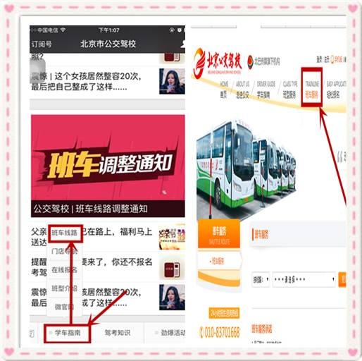 学员可登录公交驾校官网www.gjjx.com.cn点击【班车服务】查看,或是通过微信公众号(bj-gjjx)点击底端菜单栏【学车指南】选择【班车线路】查看各条线路的具体信息。