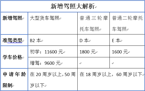 北京公交驾校为满足各类车型驾驶员的需求,在原C1、C2、A1、A2驾驶人培训业务的基础上,新增驾驶证B2(大型货车)、D(普通三轮摩托车)、E(普通二轮摩托车)培训业务,需报名者请拨打电话:010-51650830