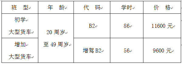 注:大客车(A1、A3)与大货车(B2)训练时间、初学和增驾学时、培训方式一样,原增加条件不变,详见价目表。