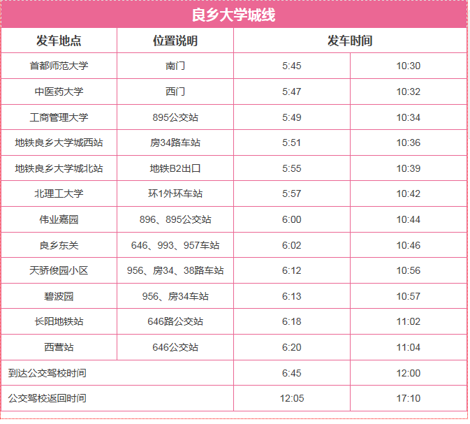 为满足广大学员需求,自2017年1月3日(下周二)起,公交驾校——良乡大学城也有班车啦!