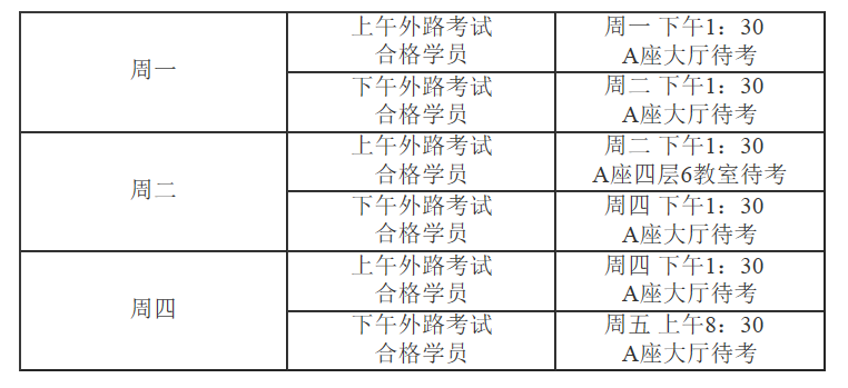 为了让您能更快领取驾驶证,公交驾校将于4月17日起实施【科目三路考+科目三理论】连考业务,具体安排如下: