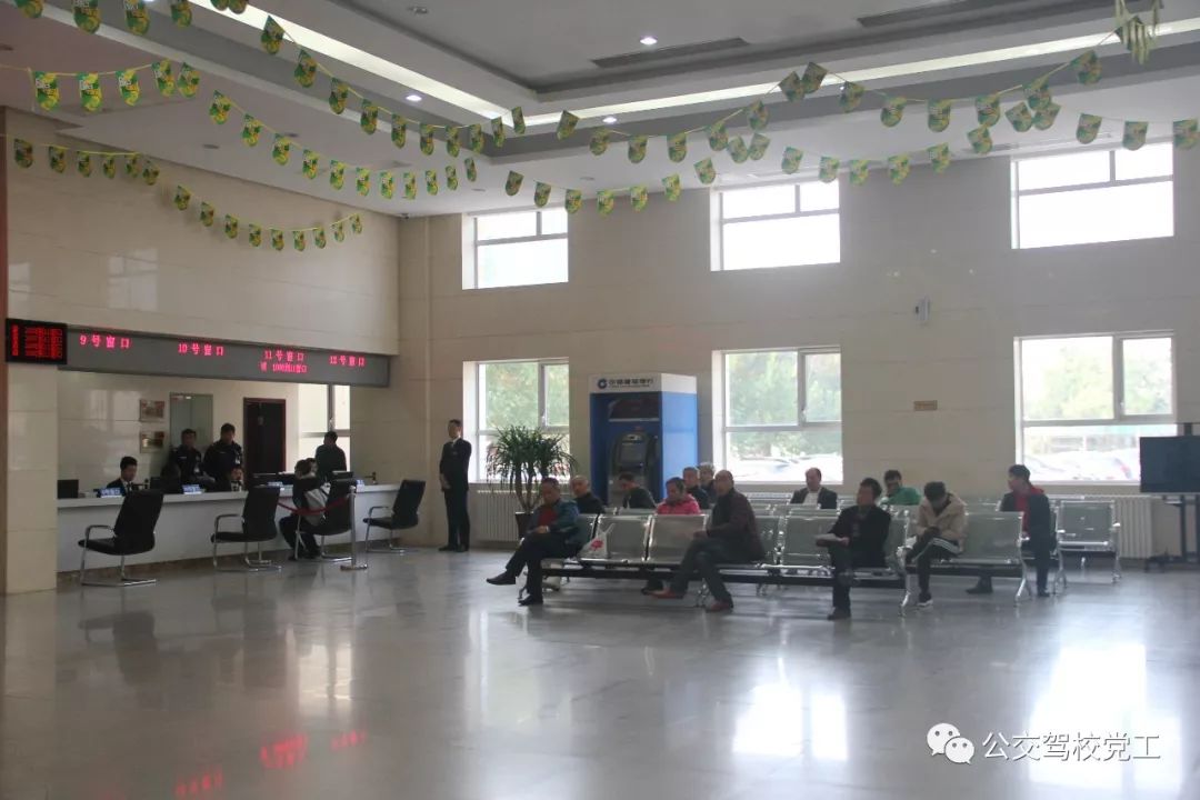 为了更好的服务学员、服务社会,我校充分利用人员和场地的资源优势,积极与车管所沟通,在公交驾校C座大厅设立了公交考试场车管服务点,10月17日上午8:30,宽敞明亮的大厅就迎来第一批顾客。