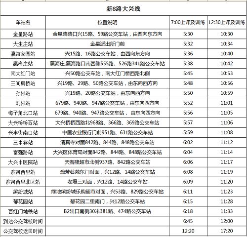 1、原8路瀛海线调整为新8路大兴线,运营时刻表如下图: