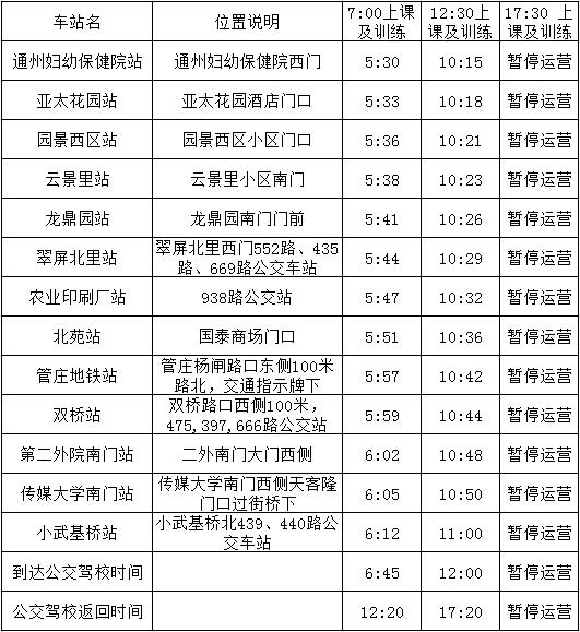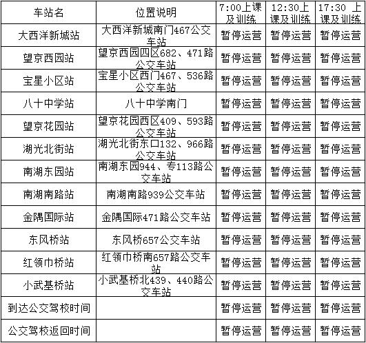 尊敬的学员朋友们,大家好。自2019年11月15日起公交驾校取消16路班车,恢复时间另行通知,给您带来不便敬请谅解: