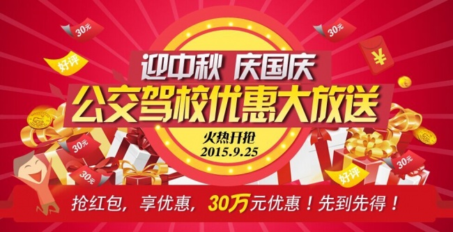在中秋国庆佳节来临之际,为了迎接新同学,感谢一路走来大家的支持,公交驾校为粉丝们奉上30万元红包福利。快告诉你的小伙伴们,准备开抢了!